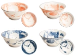 Zestaw 4 japońskich misek różowa i niebieska, Neko Nishiki 14,5 cm x 6,5 cm - Emro