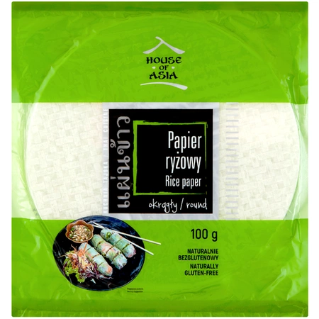 Papier ryżowy marki House of Asia produkowany jest według tradycyjnej metody, z ryżu bez dodatku tapioki. Jest przez to nieco twardszy i bardziej zwarty, ale też mniej podatny na darcie i uszkodzenia, dlatego polecamy go w szczególności do sajgonek smażonych.