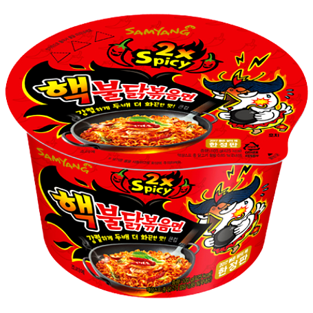 Buldak Ramyun 2xSpicy makaron instant o smaku bombowo ostrego kurczaka, duża micha 105g - Samyang