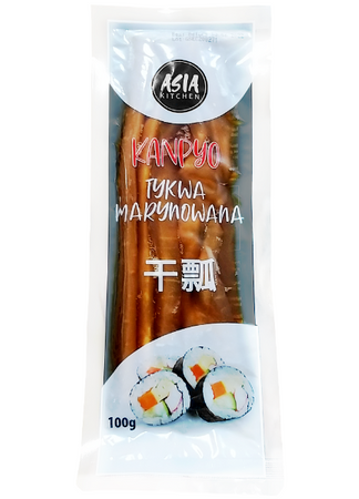 Ajitsuke Kampyō, czyli cienkie paski tykwy z rodziny dyniowatych, marynowane w słodkiej zalewie na bazie sosu sojowego, cukru i karmelu to wyjątkowy składnik do dań kuchni japońskiej o znakomitym smaku i jedwabistej, miękkiej konsystencji. Stosowany jest przede wszystkim jako wypełnienie rolek sushi (kanpyo-maki, futomaki), dodatek do sashimi, celebracyjnego chirashizushi czy pożywnych dań ryżowych poke bowl. Świetnie smakuje w połączeniu z marynowaną rzodkwią, paluszkami krabowymi, rybą, ogórkiem i awokado.