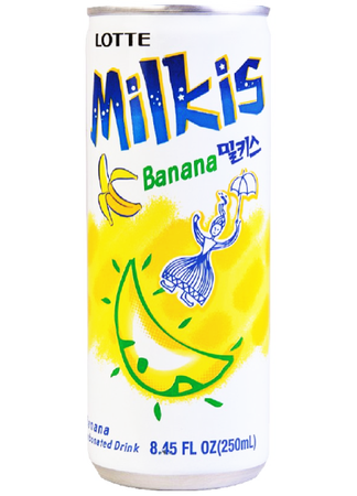 Milkis, mleczny napój gazowany o smaku bananowym z witaminami 250ml - LOTTE
