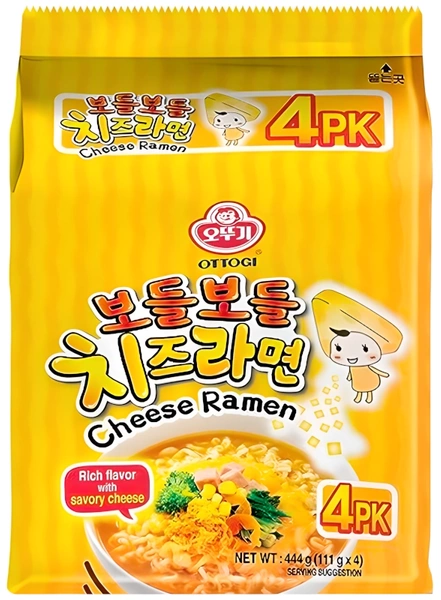 Zupa makaronowa Bodle Bodle Cheese Ramen o smaku serowym, lekko pikantna 4 x 111g - Ottogi