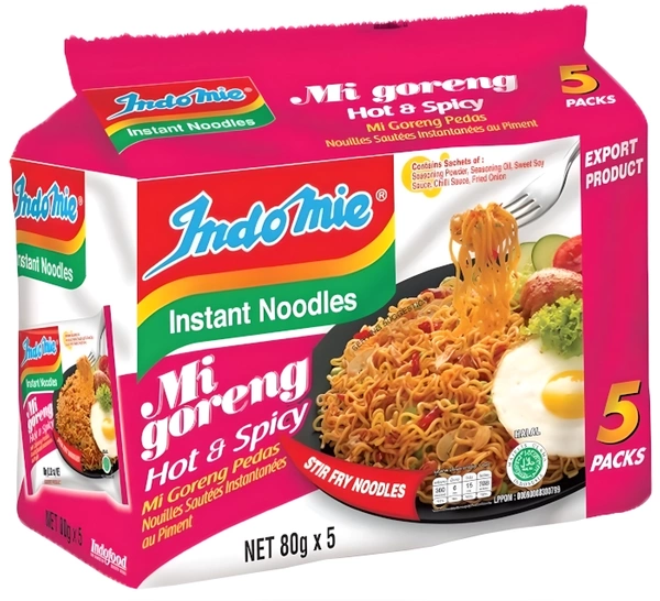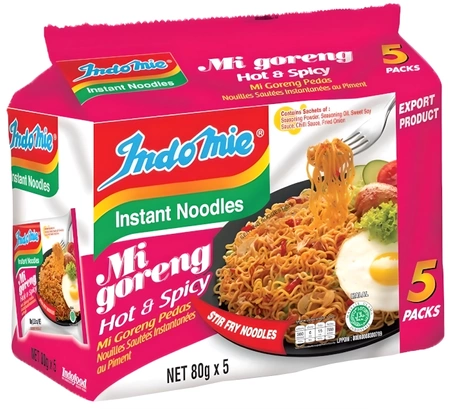 Makaron instant Indomie Mi Goreng Stir-fry Spicy Noodles to danie błyskawiczne inspirowane autentyczną, indonezyjską potrawą o tej samej nazwie. Ten orientalny rarytas, przygotowywany metodą stir-fry z dodatkiem wonnym przypraw i podawany z sadzonym jajkiem, łączy w sobie smaki wytrawny, słony i słodki, tworząc wciągającą kompozycję aromatów. W wersji pikantnej wzbogacony rozgrzewającymi przyprawami - dodatkową porcją chili, cebulki i czosnku!