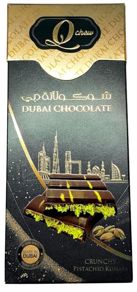Dubai Chocolate Crunchy Pistachio Kunafa, dubajska czekolada z nadzieniem z pistacji i ciasta kataifi 160g - Q Chew