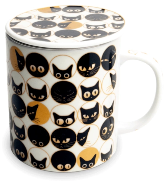 Kubek z filtrem do herbaty i pokrywką Kocie Oczka 300ml - Jewel Japan