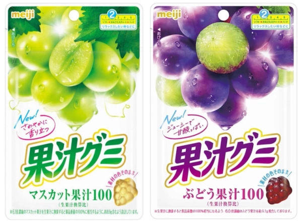 Co sprawia, że żelki Meiji są wyjątkowe? Zawierają one 100-procentowy sok z winogron oraz autentyczny aromat winogronowy, dzięki którym smak tych sprężystych cukierków może śmiało konkurować z prawdziwymi owocami. Dodatkowo, nie zawierają one sztucznych barwników - ich piękny fioletowy kolor pochodzi wyłącznie z naturalnych antocyjanów, zawartych w ciemnych owocach.
